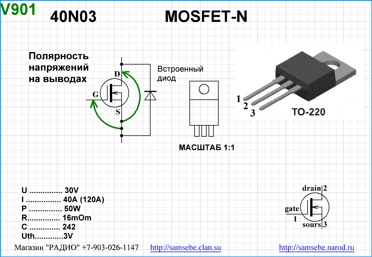Справочные данные по некоторым полевым транзисторам. По большому счёту множество мощных транзисторов имеют одинаковые свойства. Отличия в корпусе не влияют на электрические свойства. Можно заменять их один на другой особо не задумываясь. Приведены несколько карт на всякий случай. Маломощные полевые транзисторы отличаются между собой гораздо сильнее, но данные по ним будут приведены позже. |